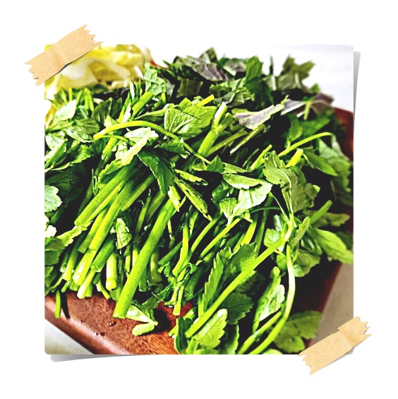 - 고기랑 먹을 때: 부드럽고 향이 은은한 미나리가 최고!