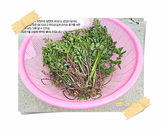 - 논밭이나 수경재배로 재배한 미나리입니다.