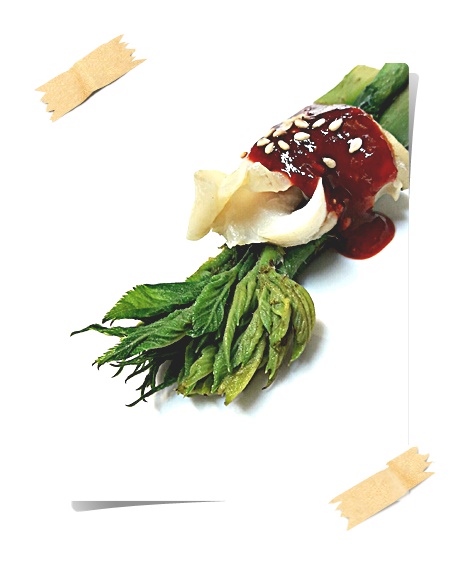 두릅의 향긋함과 새콤달콤한 초장이 너무 잘 어울려요.