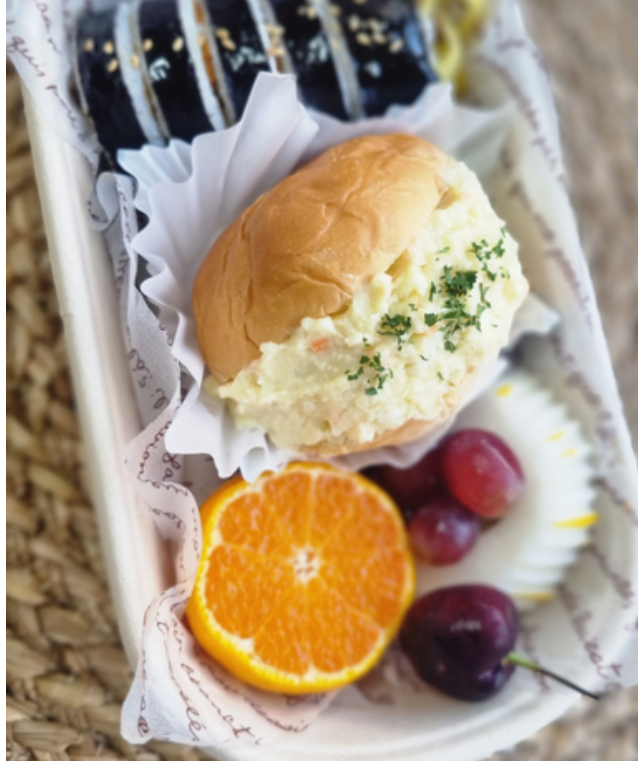 김밥반쪽과 모닝빵샌드위치와 과일구성이 어떠실지 추천드리고