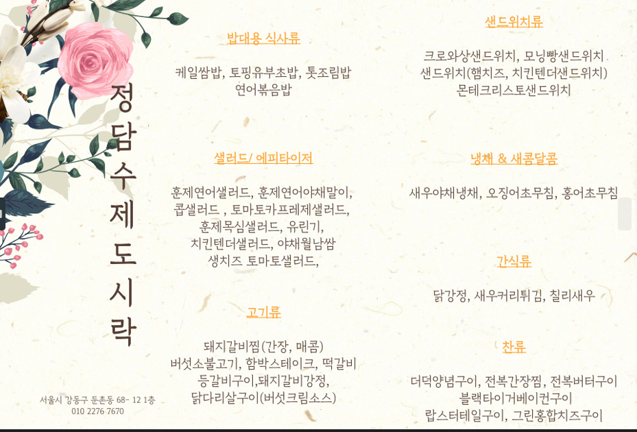 서울지역 케이터링배송가능한 정담도 이용부탁드립니다.